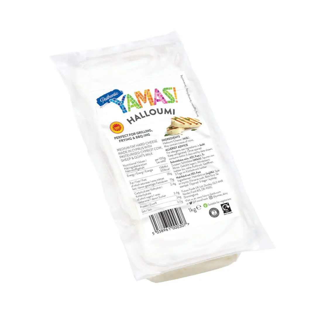 Yamas Halloumi Block is an authentic blend of pasteurised cow, goats and sheep milk. Ideal for grilling, frying or fresh dishes, it delivers consistent quality for professional kitchens.