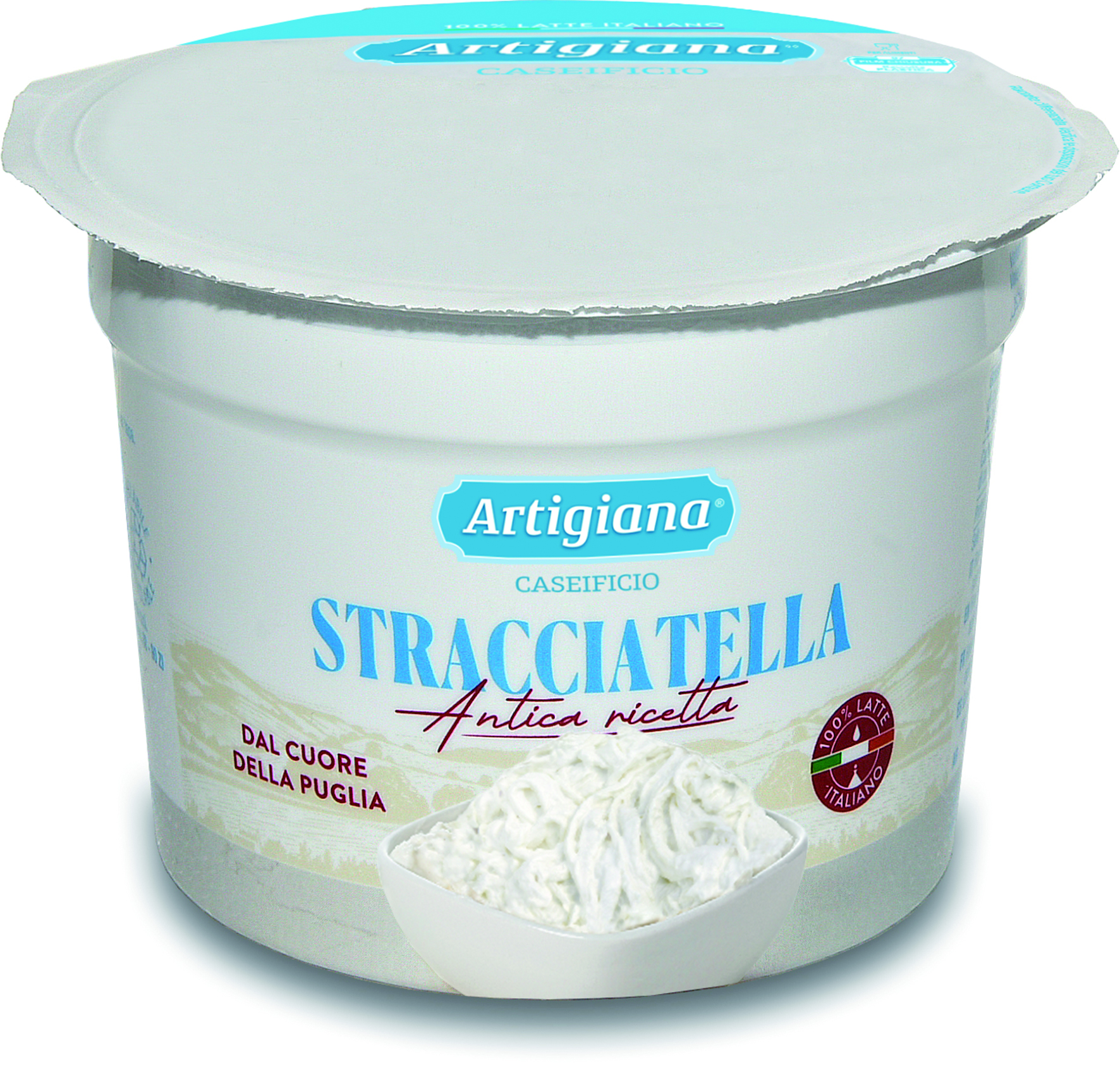 Stracciatella plain, offering creamy soft texture with delicate stringy consistency, mild fresh dairy flavor, rich buttery taste, and fresh aroma, ideal for spreading, salads, pasta, pizzas, antipasti, and gourmet Mediterranean dishes serving.