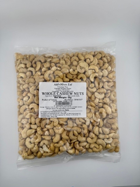 Premium whole cashew nuts with a smooth, creamy texture and naturally sweet flavour. Ideal for snacking, cooking, baking, or adding to a variety of dishes